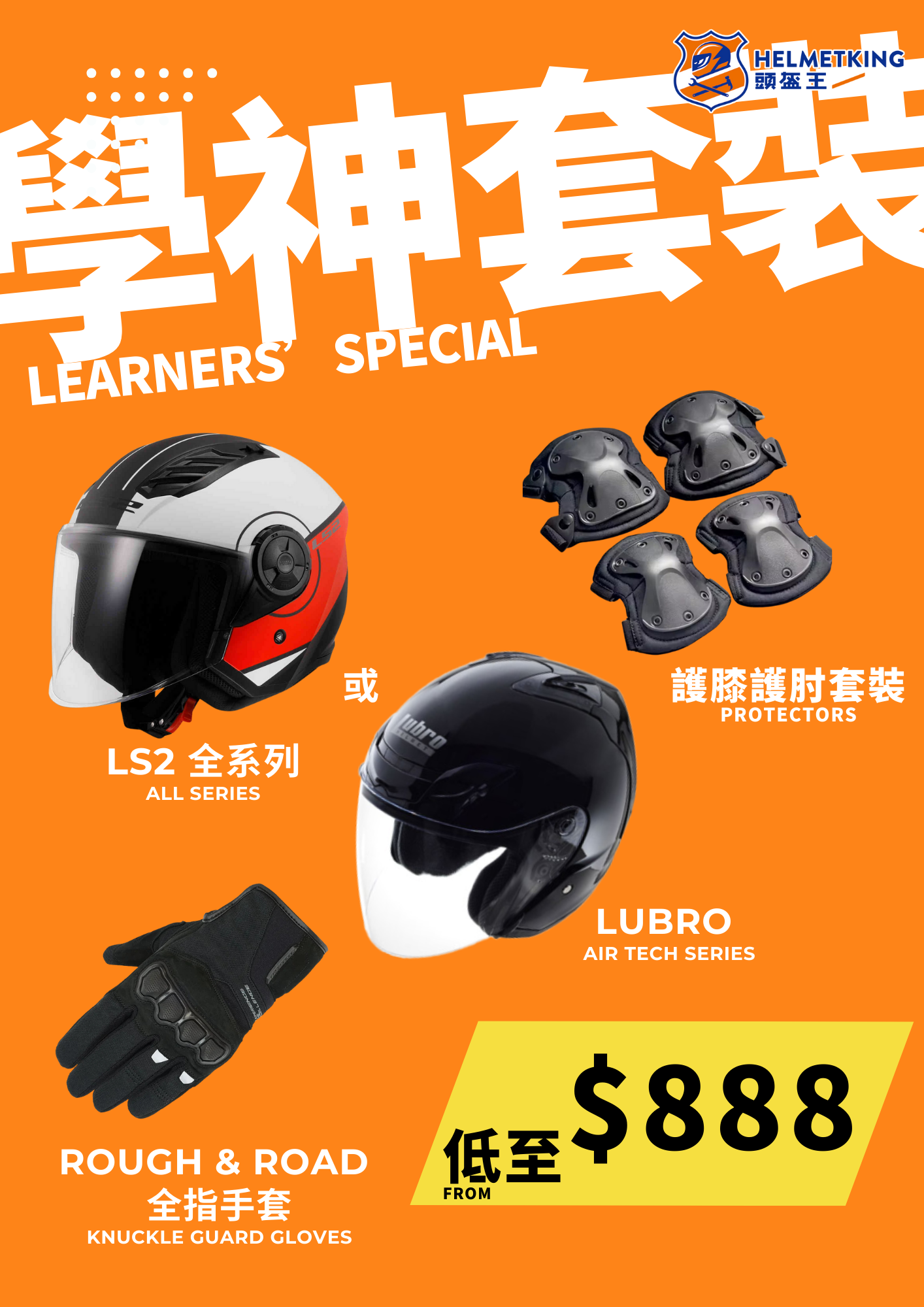 進行強制電單車駕駛訓練課程時,學院會要求你學車時配戴運輸署認可的頭盔、可以保護全指的手套、以及護膝護肘。不想與人共享裝備?想用屬於自己的私家裝備挑戰路試?頭盔王幫到你!