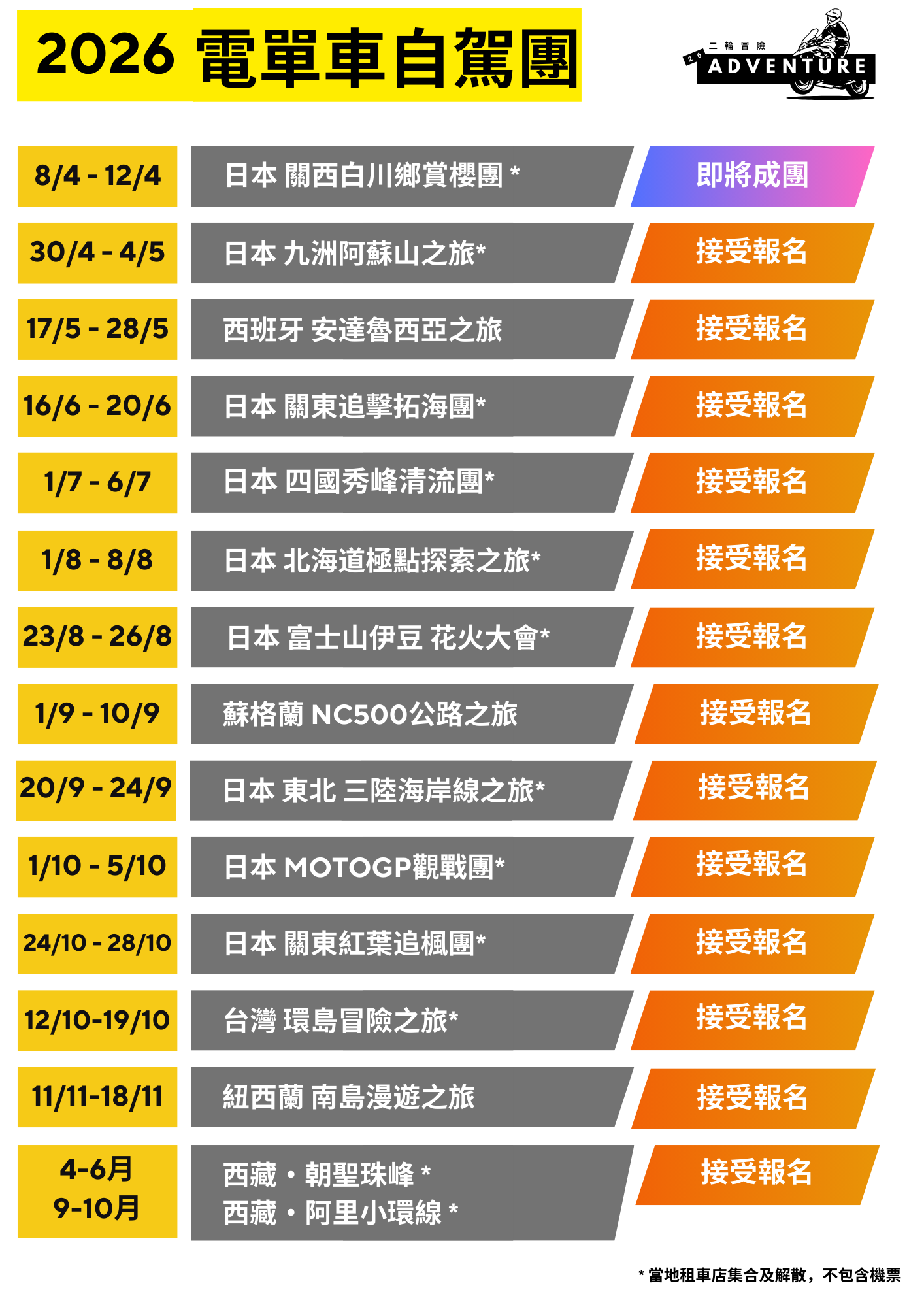 香港人對台灣絕不陌生,但台灣擁有豐富多樣的自然風景的一面,如高山峽谷、海岸線、森林、溪流等,你又有沒有見過?而要真正地體驗這些美景,騎著電單車就是最佳選擇!頭盔王將和台灣最大的電單車租貸聯盟鴻寶,和你一同探索台灣秘境!4天的半環島團會直奔台灣多個出車勝地,讓你感受人以及的台灣真正最美風景!